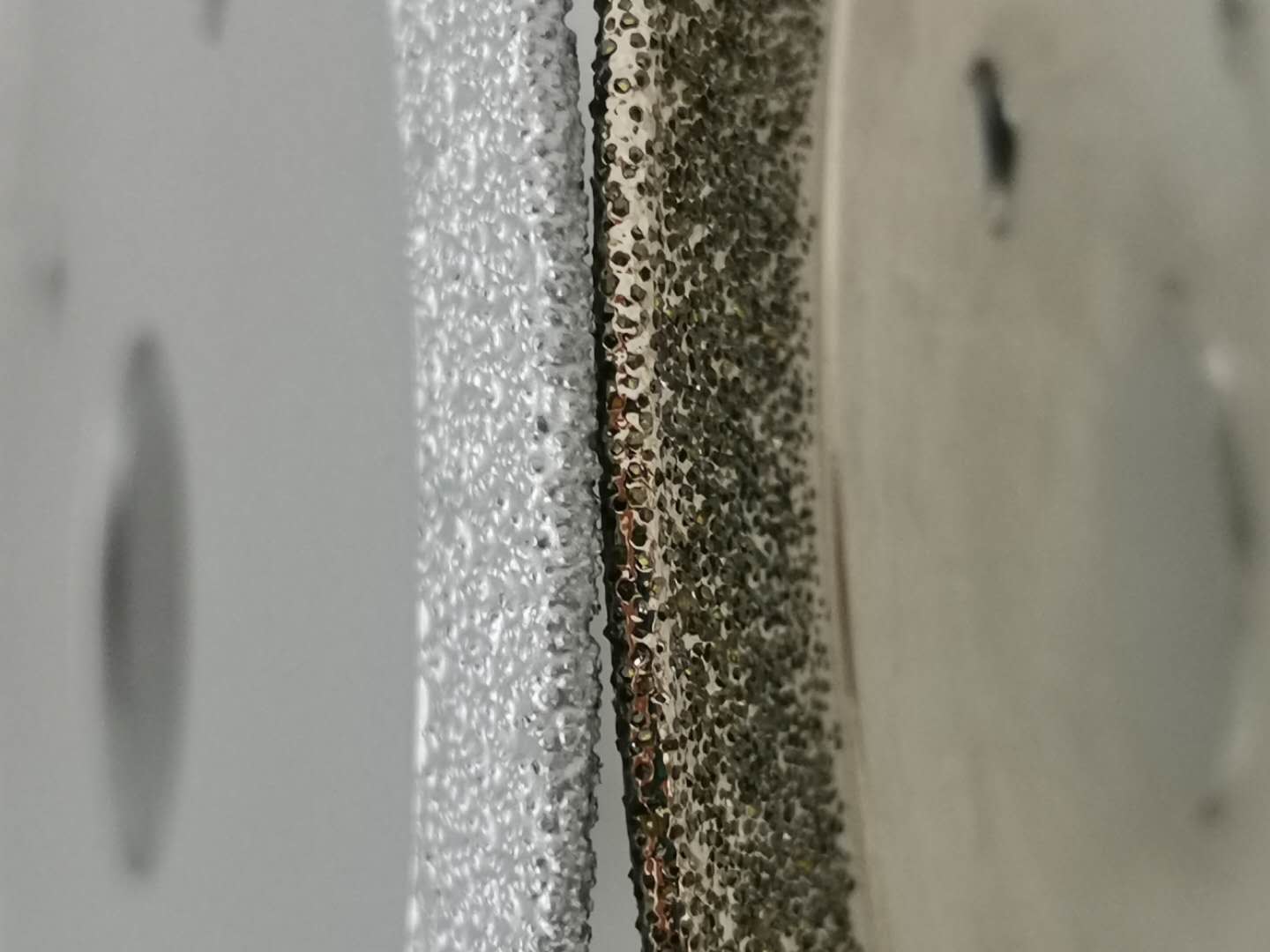 Лезвие пилы диаманта паяя принимает технологию металлизирования диаманта поверхностную, сваривающ диамант с активным наплавным металлом или основанным на никел наплавным металлом, формирующ элемент или сплав сильным карбидом, так, что будет осуществлена металлургическая химическая матрица диаманта и инструмента сочетания из, значительно улучшая управляющую силу диаманта. Паяя лезвие алмазной пилы соответствующее для резать керамику, микроспар, искусственный камень, мрамор, супер диез.
