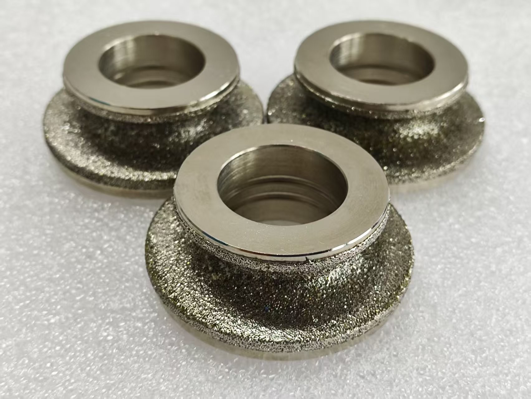Электропластировый слой:Бриллиантовые абразивные зерна прочно закрепляются на поверхности матрицы с помощью процессов электропластировки, таких как никелевое покрытие.Частицы алмаза равномерно распределены, чтобы сформировать высокопрочный слой резки.