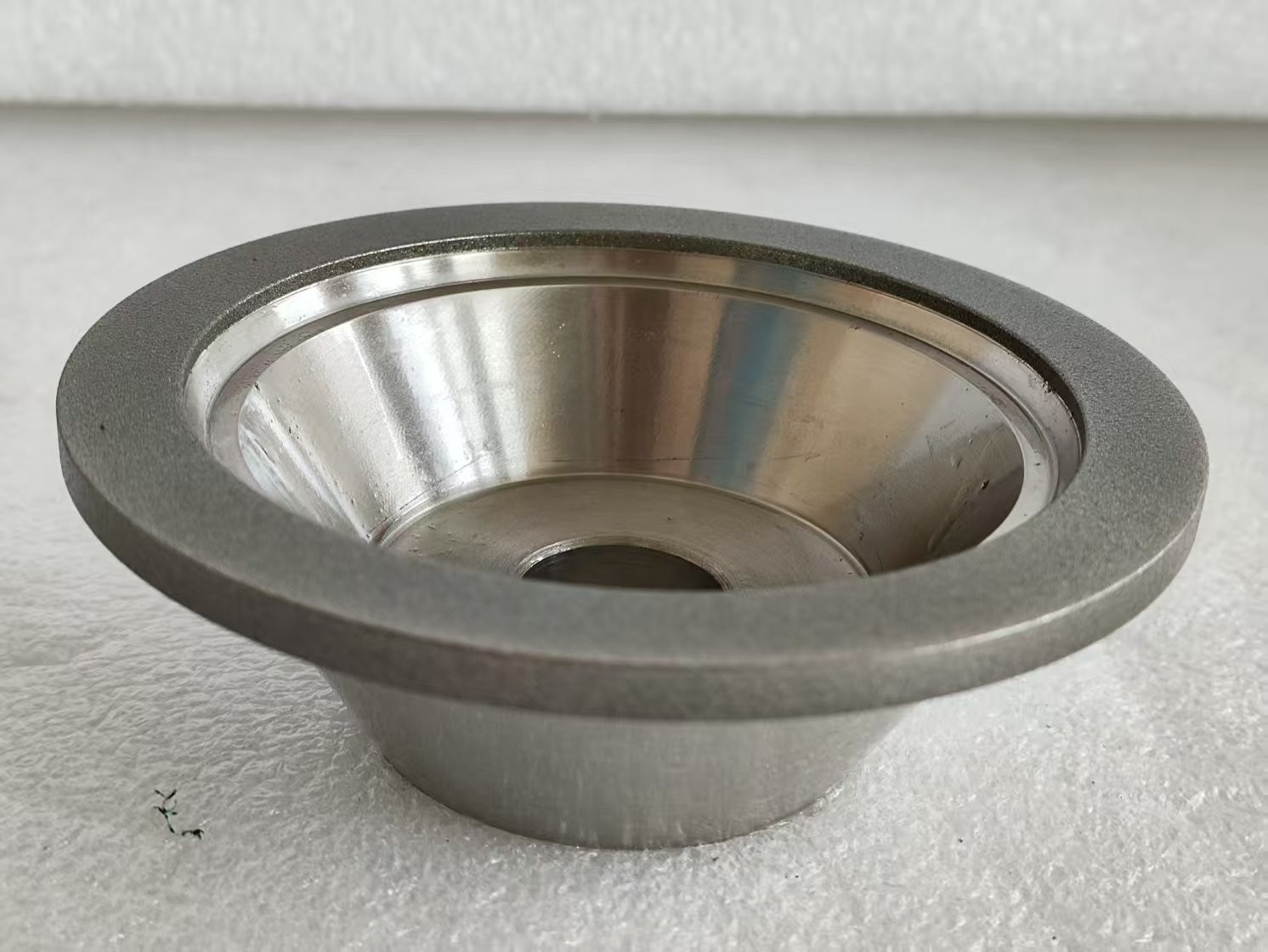 **Электроплавированное бриллиантовое шлифовальное колесо типа чашки** - это высокоточный абразивный инструмент, предназначенный для заточения и шлифования режущих инструментов (например, сверлов, конечных мельниц, станков) и твердых материалов.Он имеет форму чашки с бриллиантовыми абразивными частицами, электролитые на металлическое (обычно стальное или алюминиевое) ядро, обеспечивая высокую эффективность и долговечность шлифования.